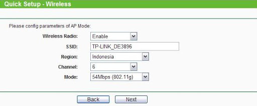 - SSID : TP-Link_DE3896 (bisa diisi sembarang sesuai nama hotspot sobat)