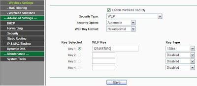 - Langkah selanjutnya adalah setting security wireless router nya agar orang yang berhak yang dapat menggunakan koneksi, pilih menu Wireless > Wireless Setting :
